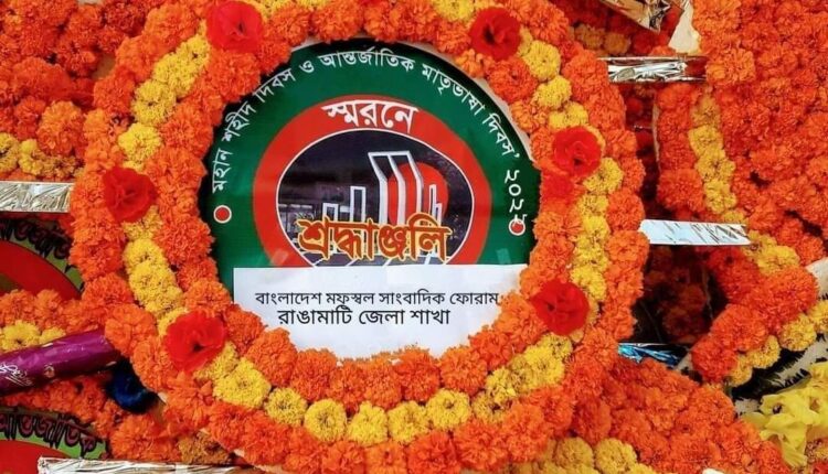 আন্তর্জাতিক মাতৃভাষা দিবস উপলক্ষে রাঙ্গামাটি কেন্দ্রীয় শহীদ মিনারে বাংলাদেশ মফস্বল সাংবাদিক ফোরাম(BMSF) এর পক্ষে থেকে পুষ্পস্তবক অর্পণ করেন ,রাঙ্গামাটি জেলা আহবায়ক মো আরিফুল ইসলাম ও মেহেদী ইমামসহ সহ সংগঠনের অন্যান্য সদস্যগণ।