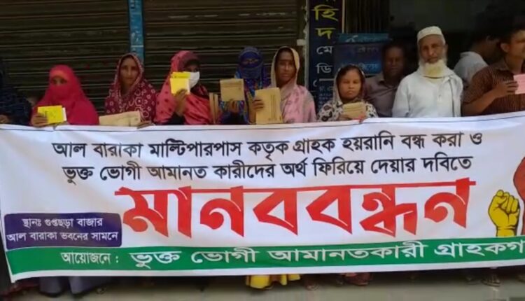 এদিকে টাকা ফেরত না দিয়ে উল্টো গ্রাহকদের শুধু আজ নয় কাল এভাবে মাসের পর মাস ঘুরাচ্ছেন । এতে বিক্ষুব্ধ গ্রাহকরা সম্প্রতি আল বারাকা মাল্টিপারপাস কো-অপারেটিভ সোসাইটির ম্যানেজারের ব্যক্তিগত অফিস ঘেরাও করেন।এ সময় গ্রাহকদের তোপের মুখে পড়েন তিনি।তাকে টানাহেঁচড়াও করেন গ্রাহকরা।আল বারাকা মাল্টিপারপাসের গ্রাহকের টাকা কেমন অফিসের আশপাশের ৩ টি হিন্দু বাড়িতে সরোজমিনে গেলে একাধিক গ্রাহক তাদের ডিপিএস এফডিআর এবং একাউন্টের বই বের করে দেখান,যা সব একাউন্ট মেয়াদ উত্তীর্ণ,মধ্য কালী বাড়ী মগধরা ১ নং ওয়ার্ড