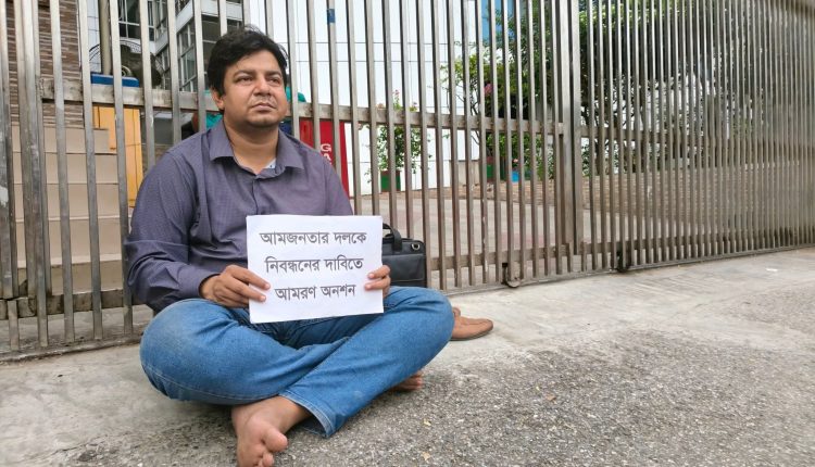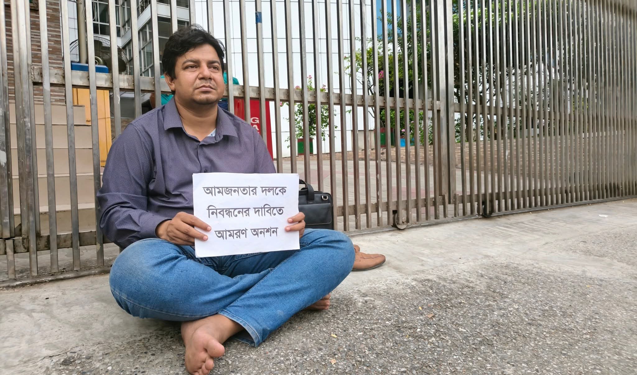 আমরণ অনশনে ইসির ফটকে রাত কাটালেন তারেক।দলের নিবন্ধনের দাবিতে নির্বাচন কমিশনের(ইসি)সামনে রাত কাটালেন আমজনতা পার্টির সদস্য সচিব তারেক রহমান।মঙ্গলবার(৪ নভেম্বর)বিকেল ৪টার দিকে আগারগাঁওয়ে নির্বাচন কমিশনের প্রধান ফটকের সামনে আমরণ অনশনের ডাক দেন তিনি।