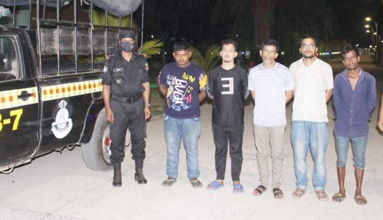 উক্ত তথ্যের ভিত্তিতে গতকাল র্যাব-৭,চট্টগ্রাম এর একটি আভিযানিক দল বর্ণিত এলাকায় অভিযান পরিচালনা করে আসামী মোহাম্মদ সুমন(২৪), পিতা-মোঃ মাছুম,সাং-গুড়ই,থানা-নিকলী, জেলা-কিশোরগঞ্জ,মোহাম্মদ রাসেল(২৬),পিতা-মৃত বাবুল,সাং-এগারগ্রাম,থানা-দেবীদ্দার,জেলা-কুমিল্লা, মোহাম্মদ শরিফ হোসেন সুমন(২৫),পিতা- মোঃ আব্দুল মোতালেব,সাং-যাত্রাপুর,থানা-মুরাদনগর, জেলা-কুমিল্লা,তপন দত্ত(৩৭),পিতা-মৃত বিমল দত্ত, সাং-বোয়ালখালী,থানা-বোয়ালখালী,জেলা-চট্টগ্রাম, এবং ই এম রেজাউর রহমান(৩০),পিতা-আতাউর রহমান,সাং-লেমশিখালী,থানা-কুতুবদিয়া,জেলা- কক্সবাজার’দেরকে আটক করতে সক্ষম হয়।