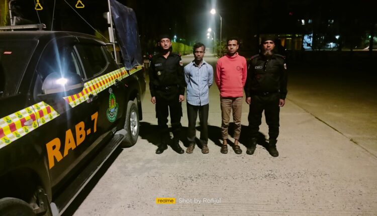 কক্সবাজারের চকরিয়া থেকে ৫টি আগ্নেয়াস্ত্র এবং ১১টি কার্তুজ উদ্ধারসহ দুইজন অস্ত্রধারী সন্ত্রাসীকে আটক করেছে র্যাব-৭,চট্টগ্রাম।গত ২৫শে ফেব্রুয়ারি আনুমানিক সাড়ে সাতটায় র্যাব-৭,চট্টগ্রামের একটি আভিযানিক দল কক্সবাজার জেলার চকরিয়া থানাধীন ফাঁসিয়াখালী এলাকায় একটি বিশেষ অভিযান পরিচালনা করে ৫টি দেশীয় প্রযুক্তিতে তৈরী আগ্নেয়াস্ত্র এবং ১১টি কার্তুজ উদ্ধারসহ দুইজন অস্ত্রধারী সন্ত্রাসীকে গ্রেফতার করতে সক্ষম হয়।গ্রেফতারকৃতরা হলেন কক্সবাজারের চকরিয়ার রংমহল এলাকার মৃত সফর মুল্লুকের ছেলে মোসাদ্দেক(৩২) এবং কক্সবাজার চকরিয়ার উত্তর পাড়া এলাকার মৃত তাজর মুল্লুকের ছেলে নেজাম উদ্দিন(৩৮)।