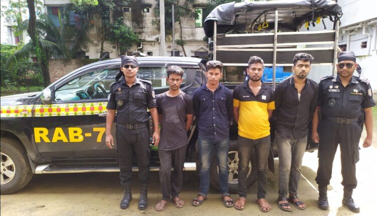 চট্টগ্রামের জোরারগঞ্জে ডাকাত চক্রের ৪ সদস্য র‍্যাবের হাতে আটক।