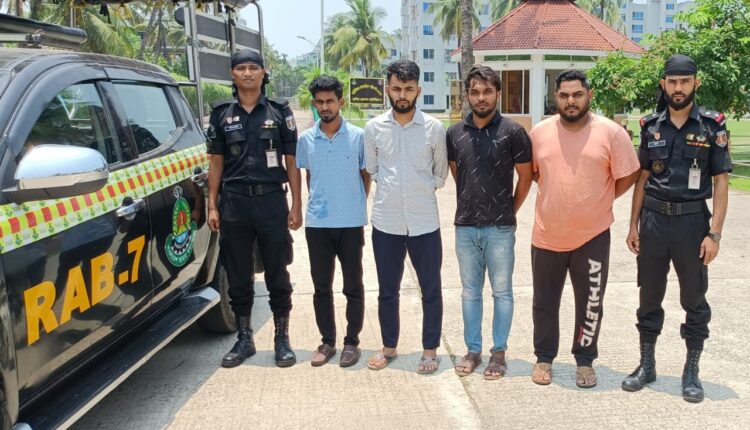 উক্ত তথ্যের ভিত্তিতে র্যাব-৭,চট্টগ্রামের একটি আভিযানিক দল ২৯ মে বর্ণিত স্থানে অভিযান পরিচালনা করে মামলা দায়েরের ১৫ ঘন্টার মধ্যে ৩ জন আসামিকে গ্রেফতার করেন।আসামীরা হলেন,হালিশহর থানাধীন আবুল হাশেমের ছেলে আবু তাহের রাজীব,লক্ষ্মীপুর সদর থানা আওতাধীন সংসেরাবাদের আনোয়ার হোসেনের ছেলে দেলোয়ার হোসেন জয় এবং হালিশহর থানাধীন এরশাদ চেয়ারম্যানের বাড়ির ইব্রাহিমের ছেলে রায়হান সজীব।