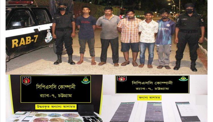 চট্টগ্রামের পাহাড়তলী এলাকায় বিভিন্ন অনলাইন সাইটে জুয়া খেলার অপরাধে ০৫ জন জুয়াড়ি আটক।
