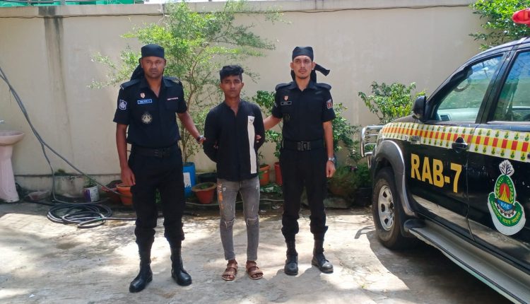 উক্ত তথ্যের ভিত্তিতে গত ২০শে সেপ্টেম্বর র্যাব-৭, চট্টগ্রাম এর একটি আভিযানিক দল বর্ণিত স্থানে অভিযান পরিচালনা করে আসামী রাহাত মিয়া(২০), পিতা-ছালামত উল্লাহ টিপু, লসাং-আলীপুর,থানা- হাটহাজারী,জেলা-চট্টগ্রামকে গ্রেফতার করতে সক্ষম হয়।