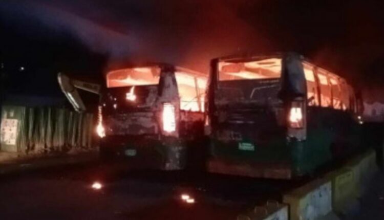 চট্টগ্রাম নগরের ওয়াসা মোড়ে আখতারুজ্জামান চৌধুরী ফ্লাইওভারের নিচে পার্কিং করে রাখা দুটি লোকাল বাসে আগুন দিয়েছে দুর্বৃত্তরা। বুধবার(১৫ নভেম্বর)রাত পৌনে এগারটার দিকে এ ঘটনা ঘটে।কারা এটি করেছে নিশ্চিত নয়,পুলিশও কাউকে আটক করতে পারেনি।