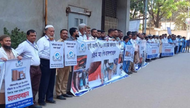 চট্টগ্রামে মা ও শিশু হাসপাতালের বিরুদ্ধে ষড়যন্ত্র বন্ধের দাবিতে মানববন্ধন।