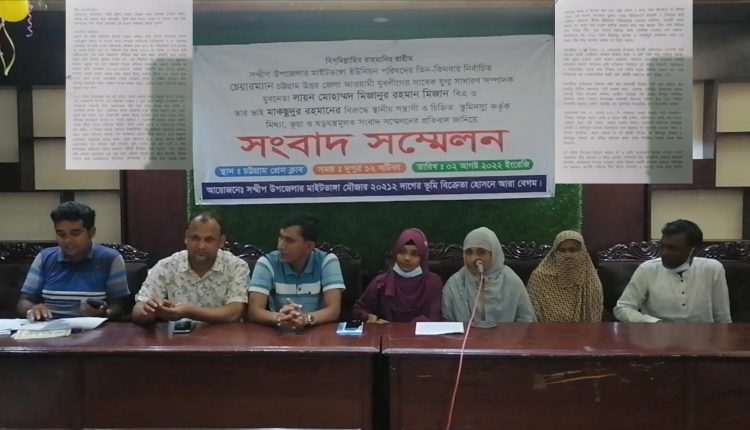 সন্দ্বীপের মাইটভাঙ্গা ইউনিয়ন পরিষদের চেয়ারম্যান মিজানুর রহমানের বিরুদ্ধে জমি দখলের মিথ্যা অপপ্রচার করা হচ্ছে দাবি করে সংবাদ সম্মেলন অনুষ্ঠিত হয়।হোসনে আরা বেগম নামে এক নারী এই সংবাদ সম্মেলনের আয়োজন করেন।২ আগস্ট (মঙ্গলবার)দুপুর ১২ টায় চট্টগ্রাম প্রেসক্লাবে এই সংবাদ সম্মেলন অনুষ্ঠিত হয়।