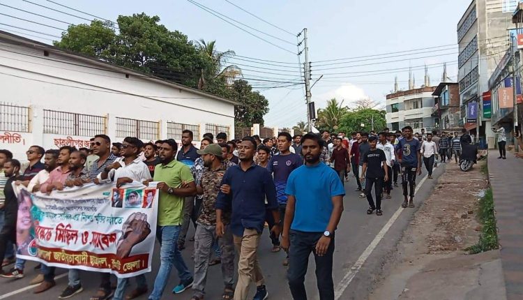 ছাত্রদলের সভাপতি সাব্বিরের মুক্তির দাবীতে রাঙামাটিতে বিক্ষোভ মিছিল।
