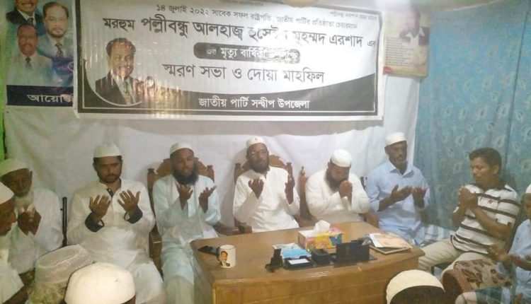 সাবেক সফল রাষ্ট্রপতি ও জাতীয় পার্টির প্রতিষ্ঠাতা চেয়ারম্যান পল্লীবন্ধু হুসেইন মুহম্মদ এরশাদের ৩য় মৃত্যুবার্ষিকী উপলক্ষে আজ ১৪ই জুলাই বাদ আছর জাতীয় পার্টি সন্দ্বীপ উপজেলা শাখার উদ্যোগে জাতীয় পার্টি সন্দ্বীপ উপজেলা কার্যালয়ে স্বরণ সভা ও দোয়া মাহফিল অনুষ্ঠিত হয়েছে।