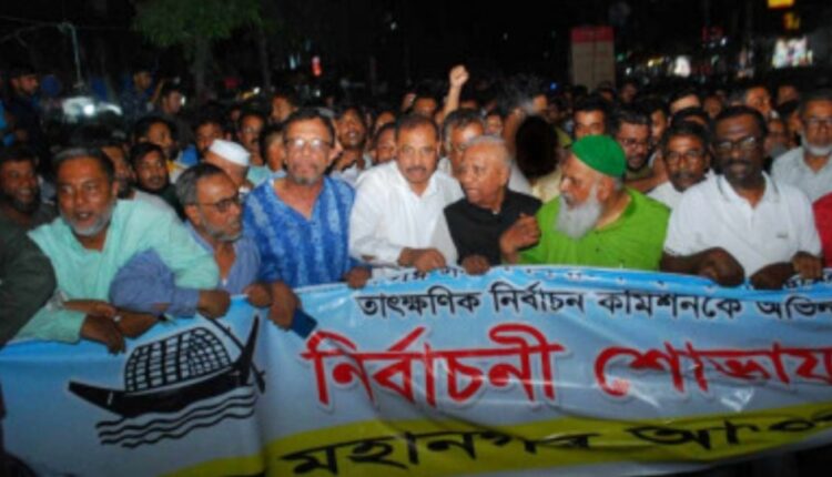 আগামী বছর ৭ জানুয়ারি দ্বাদশ জাতীয় সংসদ নির্বাচনের তফসিল ঘোষণা করায় স্বাধীন নির্বাচন কমিশনকে তাৎক্ষণিক অভিনন্দন জানিয়ে মিছিল ও নির্বাচনী শোভাযাত্রা করেছে নগর আওয়ামী লীগ।বুধবার(১৫ নভেম্বর)সন্ধ্যায় নগরের দারুল ফজল মার্কেট চত্বর থেকে একটি আনন্দ মিছিল ও নির্বাচনী শোভাযাত্রা নিউমার্কেট-জিপিও-কোতোয়ালী মোড় হয়ে জেলা পরিষদ সুপার মার্কেট চত্বরে এসে শেষ হয়।