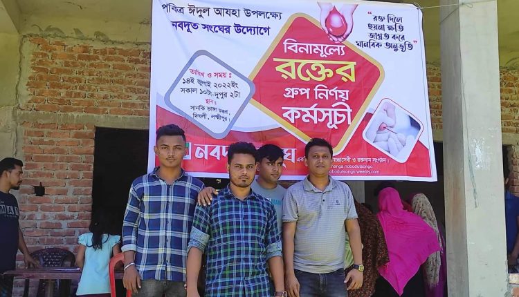 দক্ষিণ সানকি ভাঙ্গা নবদূত সংঘের উদ্যোগে বিনা মূল্যে রক্তের গ্রুপ নির্ণয়।লক্ষ্মীপুর জেলা চন্দ্রগঞ্জ থানাধীন ১৩নং দিঘলী ০৯নং ওয়ার্ড নবীনগর গ্রামে প্রতিষ্ঠিত নবদূত সংঘ একটি সামাজিক ও সেচ্ছাসেবী সংগঠন।১৫ই জুন ২০০৯ সাল থেকে সেচ্ছাসেবী সংগঠন হিসাবে কাজ করে আসছে এই সংগঠনটি।তাদের মুল কাজ হলো অসহায় মানুষের পাশে দাঁড়ানো,বস্র,খাদ্য,ইফতার এবং বিনামূল্যে কোচিং সেবা দিয়ে থাকে।