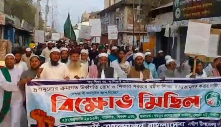 দ্রব্যমূল্যর উর্ধ্বগতি ও শিক্ষার সর্বস্তরে ইসলামী শিক্ষা বাধ্যতামূলক করার দাবিতে ইসলামী আন্দোলন বাংলাদেশ সন্দ্বীপ উপজেলা শাখার বিক্ষোভ মিছিল।