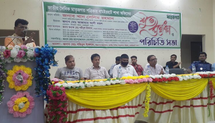 নওগাঁর ধামুইরহাটে জাতীয় দৈনিক মাতৃজগত পত্রিকার শাখা অফিসের উদ্ভোদধ ও পত্রিকাটির নওগাঁ জেলাসহ বিভিন্ন জেলা উপজেলা হইতে আগত সাংবাদিকদের পরিচিতি সভা অনুষ্ঠিত হয়েছে।