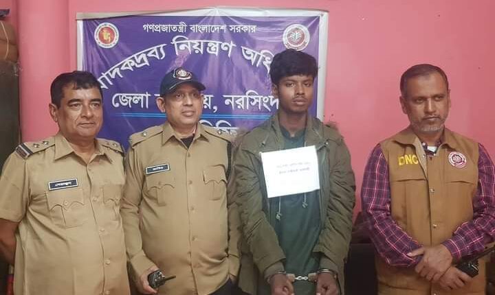 নরসিংদীতে ১৯ শত পিস ইয়াবা সহ মাদক ব্যবসায়ী রাজা ভন্ডকে মঙ্গলবার ২৮ ডিসেম্বর সকাল ১১ টার দিকে গোপন সংবাদের ভিত্তিতে সহকারী পরিচালক মো নাজমুল হকের নেতৃত্বে পরিদর্শক মোঃ জাকিরজ্জামান, উপ পরিদর্শক মোঃ আতাউর রহমান সজীব সহকারী উপপরিদর্শক এস এম ইউনুস আলী, তৃষ্ণা রাণী বিশ্বাস, মোঃ হুমায়ুন কবির ও অন্যান্য বিভাগীয় স্টাফদের সমন্বয়ে গঠিত একটি রেইডিং টিম নরসিংদী জেলার পলাশ থানাধীন ঘোড়াশাল টান স্টেশনের দক্ষিণ পাশে অস্হায়ী চেক পোস্ট এর মাধ্যমে বাদশা পরিবহন যার নাম্বারঃ ঢাকা মেট্রো ব-১৫-০৪৭৬ থেকে আসামী (১) মোঃ রাজা ওরফে ভন্ড (১৯) পিতাঃ ওমর ফারক কে ১৯৯০ পিস ইয়াবা সহ আটক করা হয়। আসামীর বিরুদ্ধে উপ পরিদর্শক জনাব মোঃ সেরাজুল ইসলাম বাদী হয়ে পলাশ থানায় একটি নিয়মিত মামলা দায়ের করেন।