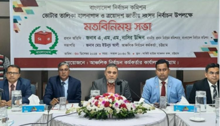 চট্টগ্রামে ভোটার তালিকা হালনাগাদ ও ত্রয়োদশ জাতীয় সংসদ নির্বাচন উপলক্ষে আয়োজিত মতবিনিময় সভায় সাংবাদিকদের প্রশ্নের জবাবে এ কথা জানান সিইসি।সোমবার(৩০ ডিসেম্বর)সকাল ১১টার দিকে চট্টগ্রাম সার্কিট হাউসে এ মতবিনিময় সভা হয়।