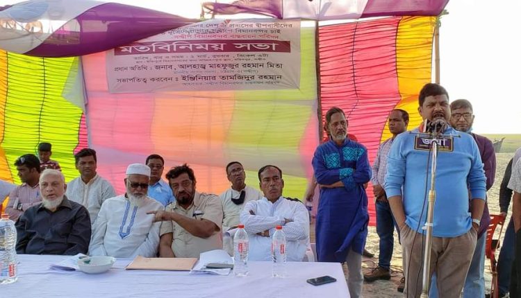 সভায় প্রধান অতিথি হিসেবে উপস্থিত ছিলেন স্থানীয় সংসদ সদস্য মাহফুজুর রহমান মিতা। এসময় তিনি বলেন অধিগ্রহন কৃত জায়গায় বিমান বন্দর স্থাপনের জন্য সম্ভাব্যতা যাচাই করে প্রয়োজনীয় ব্যবস্থা নেওয়ার জন্য আমি বিষয়টি মহান সংসদে উথ্বাপন করবো।
