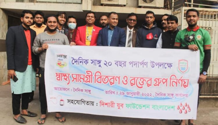 বৃহত্তম চট্টগ্রামের দৈনিক সাঙ্গু‘র ২০ তম প্রতিষ্ঠা বার্ষিকী উপলক্ষে দিশারী যুব ফাউন্ডেশন ও নুর প্রিন্টের সহযোগীতায় পথচারী, শ্রমজীবি ও নিন্মবিত্তের মানুষদের মাঝে বিনামূল্যে স্বাস্থ্য সুরক্ষা সামগ্রী, মাস্ক, হ্যান্ড স্যানিটাইজার বিতরণ ও রক্তের গ্রুপ নির্ণয় কর্মসুচি পালন করা হয়েছে।