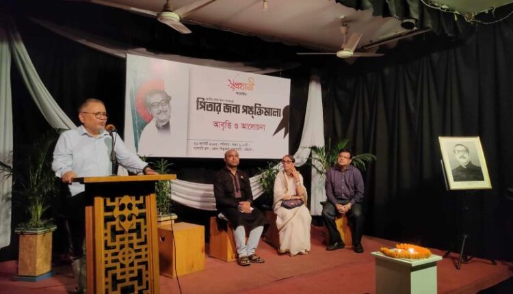 চট্টগ্রাম জেলা শিল্পকলা একাডেমির গ্যালারি হলে স্বপ্নযাত্রী আবৃত্তি সংগঠনের আয়োজনে জাতীয় শোক দিবস উপলক্ষ্যে অনুষ্ঠিত হলো বঙ্গবন্ধুকে নিবেদিত অনুষ্ঠান ‘পিতার জন্য পঙিইক্তমালা’।শনিবার(২৬ আগস্ট)সন্ধ্যায় অনুষ্ঠিত উক্ত অনুষ্ঠানে সভাপতিত্ব করেন স্বপ্নযাত্রীর সভাপতি আলী প্রয়াস।স্বাগত কথনে অংশ নেন রাজীব চক্রবর্তী।