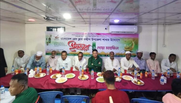 বাংলাদেশ প্রেসক্লাব সন্দ্বীপ উপজেলা শাখার আহ্বায়ক সাংবাদিক ইলিয়াছ সুমনের সভাপতিত্বে এবং সদস্য সচিব পুষ্পেন্দু মজুমদারের সঞ্চালনায় উক্ত ইফতার ও দোয়া মাহফিলে প্রধান অতিথি হিসাবে বক্তব্য রাখেন সন্দ্বীপ উপজেলা পরিষদের ভারপ্রাপ্ত চেয়ারম্যান ও উপজেলা আওয়ামী লীগের সাধারণ সম্পাদক মাইনউদ্দীন মিশন।এছাড়া সম্মানিত অতিথি হিসাবে বক্তব্য রাখেন সন্দ্বীপ উপজেলা নির্বাহী কর্মকর্তা সম্রাট খীসা।