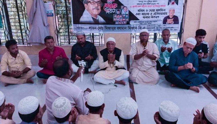 আলোচনা সভা শেষে ধর্মীয় শিক্ষক ও মাইটভাঙ্গা ইউনিয়ন আওয়ামী লীগের সহ-সভাপতি মাওলানা মোশাররফ হোসেন জাতির জনক বঙ্গবন্ধু শেখ মুজিবুর রহমান ও তাঁর পরিবারের সদস্যদের আত্মার শান্তি কামনা করে দোয়া পরিচালনা করেন।