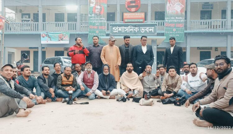 পরে প্রশাসনীক সকল কর্যালয়,রাজনৈতি ও বিভিন্ন অঙ্গ সংগঠনের পুষ্পস্তবক অর্পণ শেষে বীর শহীদদের প্রতি শ্রদ্ধাঞ্জলী নিবেদ করে উপজেলা পরিষদ প্রাঙ্গনের রাস্তায় বসে সংবাদ সম্মেলন করে উপস্থিত সংবাদকর্মীরা।সংবাদ সম্মেলনে সংবাদকর্মীরা উপজেলা প্রশাসনের সকল অনুষ্ঠান অনির্দিষ্টকালের জন্য বর্জন করার ঘোষণা প্রদার করেন।