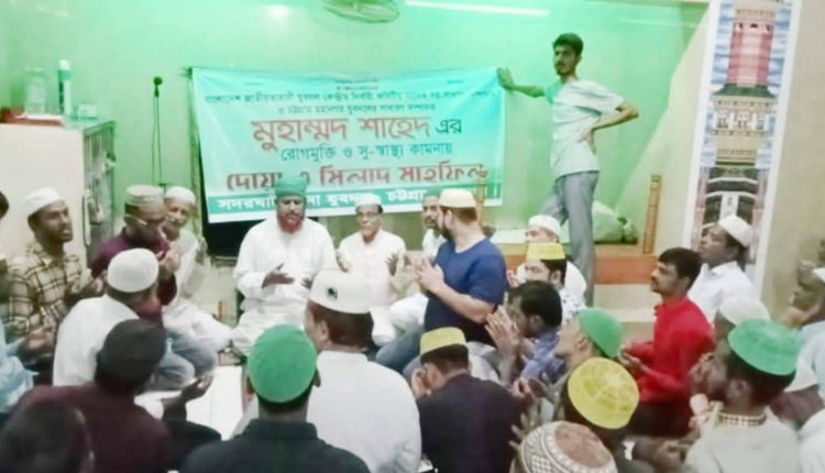 সদরঘাট থানা যুবদল আহ্বায়ক ইসমাইল ও সদস্য সচিব মোহাম্মদ রাশেদ এর উদ্যোগে বাংলাদেশ জাতীয়তাবাদী যুবদল কেন্দ্রীয় নির্বাহী কমিটির সাবেক সহ-সাধারণ সম্পাদক ও চট্টগ্রাম মহানগর যুবদলের সাধারণ সম্পাদক মুহাম্মদ শাহেদ এর রোগমুক্তি ও সুস্বাস্থ্য কামনায় বাইতুল সালাত মসজিদে দোয়া ও মিলাদ মাহফিল আয়োজন করা হয়।দোয়া ও মোনাজাত পরিচালনা করেন হাফেজ মাওলানা আবু তাহের।
