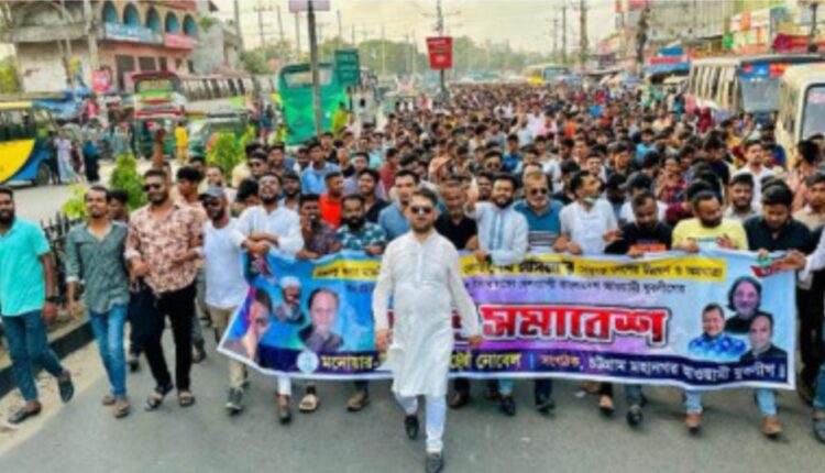 মঙ্গলবার(১৩ জুন)বিকেলে নগর যুবলীগ নেতা মনোয়ার উল আলম চৌধুরী নোবেলের নেতৃত্বে শান্তি মিছিলটি একেখান মোড় থেকে শুরু করে সাগরিকা মোড় প্রদক্ষিণ করে অলঙ্কার মোড়ে শান্তি সমাবেশের মধ্য দিয়ে শেষ হয়।
