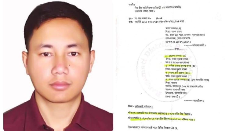 তাই বাধ্য হয়ে তিনি উক্ত ঘটনার পরিপেক্ষীতে ন্যায় বিচার পাবার জন্য আদালতে দারস্থ হয়ে এ্যাডভোকেট বিমল তঞ্চঙ্গ্যার মাধ্যমে একটি মামলা দায়ের করেন।মামলাটির সি আর নং ৩১/২০২২।