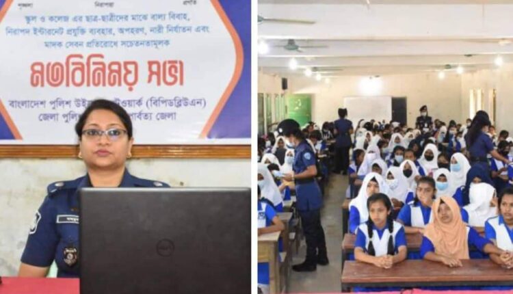 বাংলাদেশ পুলিশ উইমেন নেটওয়ার্ক ব্যানারে রাঙ্গামাটি জেলা পুলিশ কর্তৃক রাঙ্গামাটি বালিকা উচ্চ বিদ্যালয়ের ছাত্রীদের নিয়ে বাল্য বিবাহ, নিরাপদ ইন্টারনেট প্রযুক্তি ব্যবহার,অপহরণ,নারী নির্যাতন এবং মাদক সেবন প্রতিরোধে সচেতনতামূলক মতবিনিময়সভা করেন রাঙ্গামাটি পার্বত্য জেলার অতিরিক্ত পুলিশ সুপার (প্রশাসন ও অর্থ) ও চট্টগ্রাম রেঞ্জ সহ-সমন্বয়ক বিপিডব্লিউএন জনাব মাহমুদা বেগম মহোদয়।