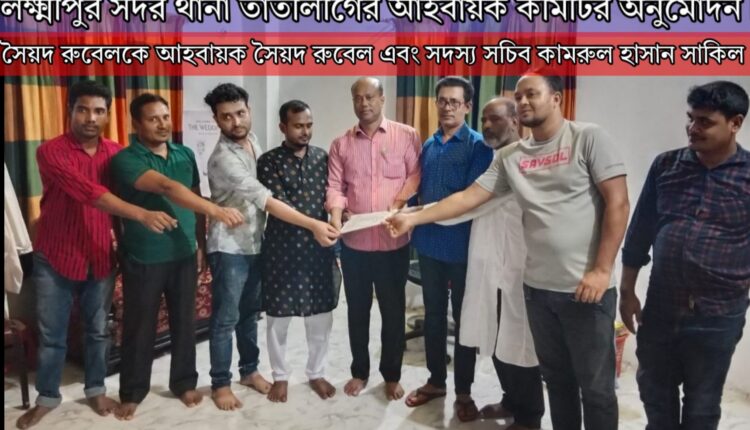 বাংলাদেশ আওয়ামী লীগের অন্যতম সহযোগী সংগঠন বাংলাদেশ তাঁতী লীগের লক্ষ্মীপুর সদর থানা আহবায়ক কমিটি ঘোষণা করেছেন লক্ষ্মীপুর জেলা তাঁতী লীগ।গতকাল ২৭ জুলাই বৃহস্পতিবার সভাপতি দীপঙ্কর চৌধুরী দিপু ও সাধারণ সম্পাদক এজেএম ইসমাইল হোসেন স্বাক্ষরিত পত্রে সৈয়দ রুবেলকে আহবায়ক ও কামরুল হাসান সাকিলকে সদস্য সচিব করে ২১ সদস্যের কমিটি অনুমোদন দেন।