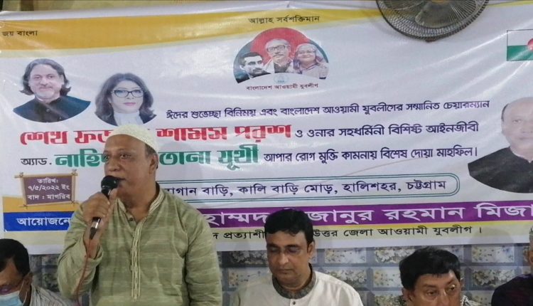 লায়ন মোহাম্মদ মিজানুর রহমান উদ্যোগে চট্টগ্রামে শেখ ফজলে শামস পরশ ও নাহিদ সুলতানা যুথীর রোগ মুক্তির জন্য বিশেষ দোয়া মাহফিল।
