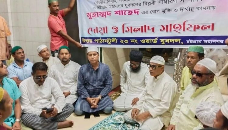 চট্টগ্রাম মহানগর যুবদল মৎস্য ও পশু বিষয়ক সম্পাদক সুলতান আহমেদ সুমন এর উদ্যোগে উত্তর পাঠানটুলি ২৩ নং ওয়ার্ডে বাংলাদেশ জাতীয়তাবাদী যুবদল কেন্দ্রীয় নির্বাহী কমিটির সাবেক সহ-সাধারণ সম্পাদক ও চট্টগ্রাম মহানগর যুবদলের সাধারণ সম্পাদক মুহাম্মদ শাহেদ এর রোগমুক্তি ও সুস্বাস্থ্য কামনায় বায়তুল হামদ জামে মসজিদ দোয়া ও মিলাদ মাহফিল আয়োজন করা হয়।