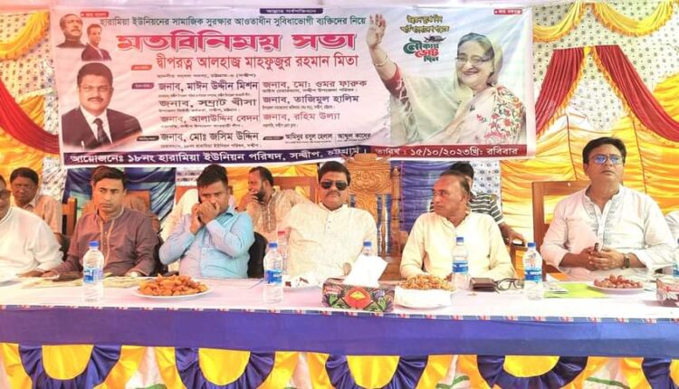 চট্টগ্রামের সন্দ্বীপ উপজেলায় হারামিয়া ইউনিয়নে সামাজিক সুরক্ষার আওতায় সুবিধাভোগীদের নিয়ে অনুষ্ঠিত মতবিনিময় সভায় প্রধান অতিথির বক্তব্যে সন্দ্বীপ থেকে নির্বাচিত সংসদ সদস্য মাহফুজুর রহমান মিতা এ কথা বলেন।রবিবার সকালে হারামিয়া ইউনিয়ন পরিষদ মাঠে প্রায় ছয় হাজার সুবিধাভোগীদের নিয়ে অনুষ্ঠিত এ মতবিনিময় সভার সভাপতিত্ব করেন হারামিয়া ইউপি চেয়ারম্যান জসিম উদ্দিন।