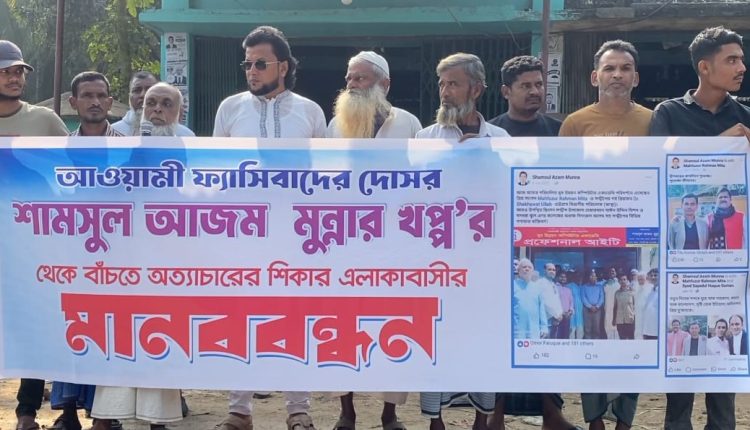 সন্দ্বীপে আওয়ামী ফ্যাসিবাদের দোসর শামসুল আজম মুন্নার খপ্পর”র থেকে বাঁচতে মানববন্ধন করেছেন এলাকাবাসী।