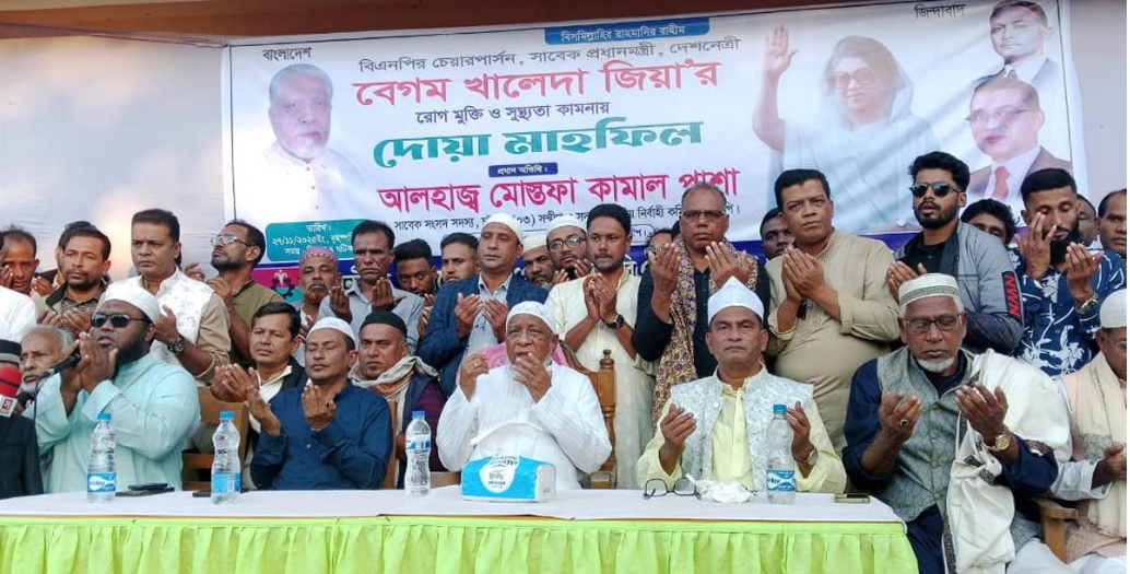 বিএনপি চেয়ারপারসন ও সাবেক প্রধানমন্ত্রী বেগম খালেদা জিয়ার সুস্থতা কামনায় দোয়া মাহফিল করেছে বিএনপি।বৃহস্পতিবার বিকেল ৩টায় মধ্য রহমতপুর সরকারি প্রাথমিক বিদ্যালয় মাঠে দলটির কেন্দ্রীয় নির্বাহী কমিটির সদস্য ও চট্টগ্রাম-৩(সন্দ্বীপ)আসনের সাবেক সাংসদ মোস্তফা কামাল পাশার উদ্যোগে এ দোয়া অনুষ্ঠিত হয়।