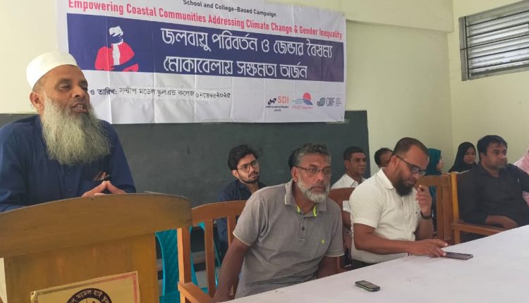 উপকূলীয় জনগোষ্ঠীর মধ্যে জলবায়ু পরিবর্তন ও জেন্ডার বৈষম্য মোকাবেলায় সচেতনতা বৃদ্ধির লক্ষ্যে “Empowering Coastal Communities Addressing Climate Change & Gender Inequality” শীর্ষক এক সচেতনতামূলক স্কুল ও কলেজভিত্তিক সেশন অনুষ্ঠিত হয়েছে।