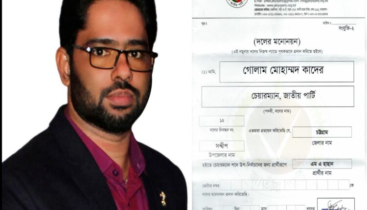 সন্দ্বীপ উপজেলা পরিষদ উপ-নির্বাচনে জাতীয় পার্টির মনোনয়ন পেলেন এম এ হাছান।