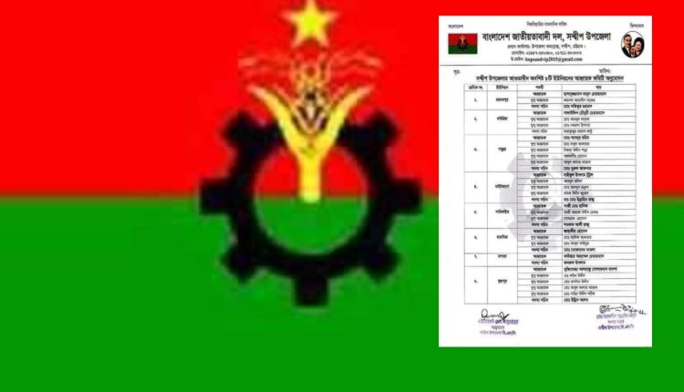 এতে হাসানুজ্জামান মামুন চেয়ারম্যানকে আহ্বায়ক,জয়নাল আবেদীন বাকের কে যুগ্ম আহ্বায়ক ও শফিকুর রহমান কে সদস্য সচিব করে রহমতপুর ইউনিয়ন,জাহাঙ্গীর হোসেনকে আহবায়ক ও মোক্তাদের মাওলাকে সদস্য সচিব করে হারামিয়া ইউনিয়ন,গাজী হানিফকে আহ্বায়ক ও শওকত আলী রাজুকে সদস্য সচিব করে সারিকাইত ইউনিয়ন,মুক্তিযোদ্ধা সোলাইমান বাদশাকে আহ্বায়ক ও ইদ্রিস আলমকে সদস্য সচিব করে মুছাপুর ইউনিয়ন,আবদুর রহিমকে আহবায়ক ও নুরুল আফসারকে সদস্য সচিব করে গাছুয়া ইউনিয়ন,সালাউদ্দিন চৌধুরী চেয়ারম্যানকে আহবায়ক ও মাহফুজুর রহমানকে সদস্য সচিব করে বাউরিয়া ইউনিয়ন,সাইফুল ইসলাম টুটুলকে আহবায়ক ও ইব্রাহিম রাজুকে সদস্য সচিব করে মাইটভাঙ্গা ইউনিয়ন,কাউছার চেয়ারম্যানকে আহবায়ক ও ফখরুল ইসলামকে সদস্য সচিব করে মগধরা ইউনিয়ন মিলিয়ে মোট ৮টি ইউনিয়ন বিএনপি কমিটি ঘোষণা করা হয়।