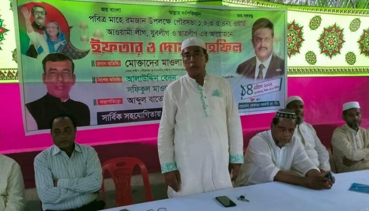 ১৪ এপ্রিল অনুষ্ঠিত ইফতার ও দোয়া মাহফিলে প্রধান অতিথি ছিলেন পৌর মেয়র ও পৌর আওয়ামীলিগের সভাপতি মোক্তাদের মাওলা সেলিম। বিশেষ অতিথি ছিলেন প্যানেল মেয়র ও পৌর আওয়ামীলিগের সাধারন সম্পাদক সফিকুল মাওলা। সভায় সভাপতিত্ব করেন ৩ নং ওয়ার্ড আওয়ামীলিগের সভাপতি মোঃ আব্দুল বাতেন।