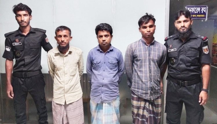 উক্ত তথ্যের ভিত্তিতে গতকাল(২৫শে সেপ্টেম্বর) র্যাব-৭,চট্টগ্রাম এর একটি আভিযানিক দল বর্ণিত স্থানে অভিযান পরিচালনা করে কক্সবাজার জেলার উখিয়া থানা আওতাধীন জালিয়া পালং এর মৃত ফরিদ আলমের পুত্র আলমগীর(৩০),আঞ্জুমান পারার আলী মিয়ার পুত্র নজরুল মিয়া(২৬) ও পশ্চিম পালংখালীর আবদুল গফুরের পুত্র মুক্তার আহমেদ(৪২)কে আটক করতে সক্ষম হয়।