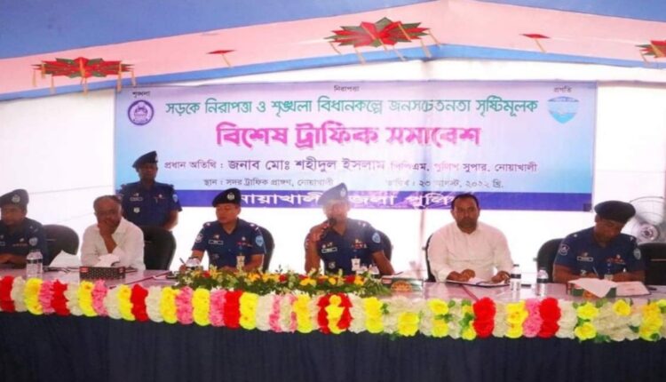 সড়কে নিরাপত্তা ও শৃঙ্খলা ফেরাতে নোয়াখালীতে জনসচেতনতা সৃষ্টিমূলক বিশেষ ট্রাফিক সমাবেশ অনুষ্ঠিত হয়েছে।মঙ্গলবার(২৩ আগস্ট)বেলা সাড়ে ১১টায় সদর ট্রাফিক অফিসে জেলা পুলিশের আয়োজনে এ সভা অনুষ্ঠিত হয়।