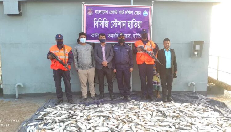 হাতিয়ার মেঘনা নদী থেকে ৮০০ কেজি জাটকা ইলিশ জব্দ করে কোস্ট গার্ড