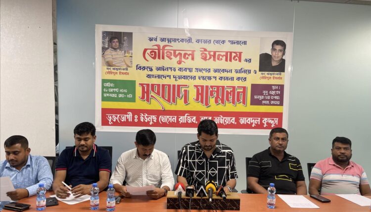 কাতারে তিন প্রবাসী ব্যবসায়ীর বিপুলপরিমাণ অর্থ আত্মসাৎ করে দেশে পালিয়ে যাওয়া তৌহিদুল ইসলাম এর কাছ থেকে অর্থ ফেরত পেতে সংবাদ সম্মেলন ও বাংলাদেশ দূতাবাসের মাধ্যমে নোয়াখালী জেলা পুলিশ সুপার বরাবর অভিযোগপত্র জমা দিয়েছে প্রতারণার শিকার ভুক্তভোগীরা।